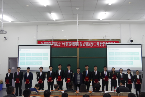2017年10月11日,3377体育2017年班导师聘任仪式暨筑梦工程奖学金颁奖典礼在建筑学馆A302成功举行,学院党委书记安立鸿、学院副院长曲艺、学院党委副书记兼副院长徐长文、城乡规划系主任高雁鹏受邀出席。