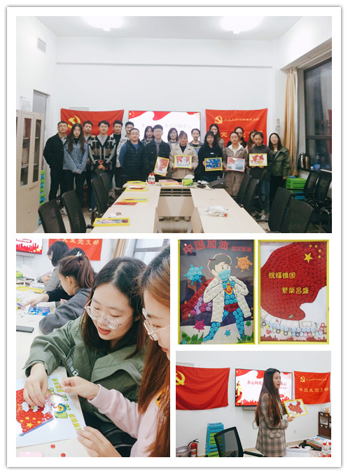 该活动以抗击疫情、祖国生日为主题,支部党员发挥想象力和创造力进行纽扣画的制作,并分享自己的创作思路。活动过程中,全体党员团结协作、积极参与,绘画寓意深刻。其中,张熔弋和张丁杰的作品《中国加油,武汉加油》表达了对医护人员的敬佩和对祖国未来的祝福,荣获了本次活动的“佳作奖”。