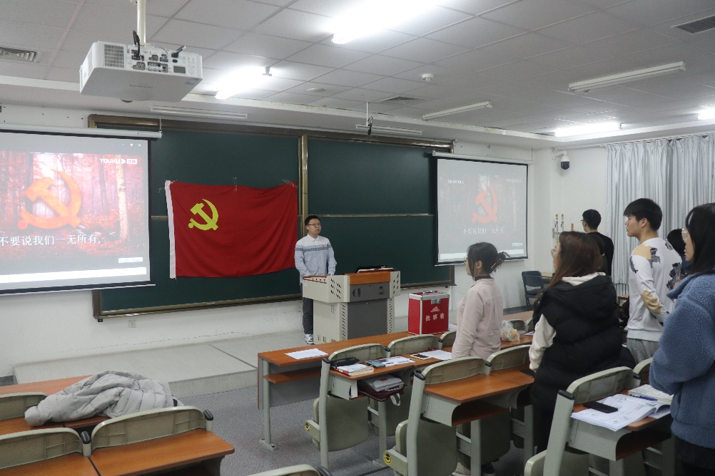 大会第一项,全体起立,奏中华人民共和国国歌。之后,由王喆同志宣读学院党委《关于本科生党支部申请拆分的函复》。原本科生党支部涵盖负责学院2017级、2018级、2019级全体本科生党建工作,支部党员人数众多,管理难度较大,在一定程度上限制了党务工作质量的提升。经党支部申请、学院党委会讨论,同意拆分为本科生第一党支部与本科生第二党支部,本支部为本科生第二党支部。