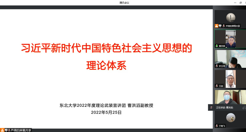 为深入学习贯彻习近平新时代中国特色社会主义思想,持续巩固拓展党史学习教育成果,5月25日下午,学院开展教职工“引领·提升·共进”“1+1”专项活动暨教职工政治学习,邀请学校2022年理论武装宣讲团成员、马克思主义学院副教授曹洪滔为全体教职工作线上专题讲座。