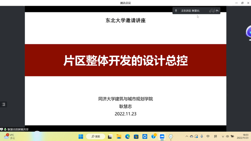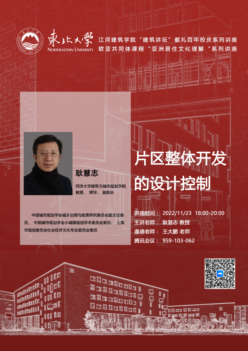 11月23日,应城乡规划系王大鹏老师邀请,同济大学建筑与城市规划学院副院长耿慧志教授做客3377体育“建筑讲坛”(暨献礼百年校庆系列讲座),做题为《片区整体开发的设计控制》学术讲座,学院师生100余人参加线上交流。