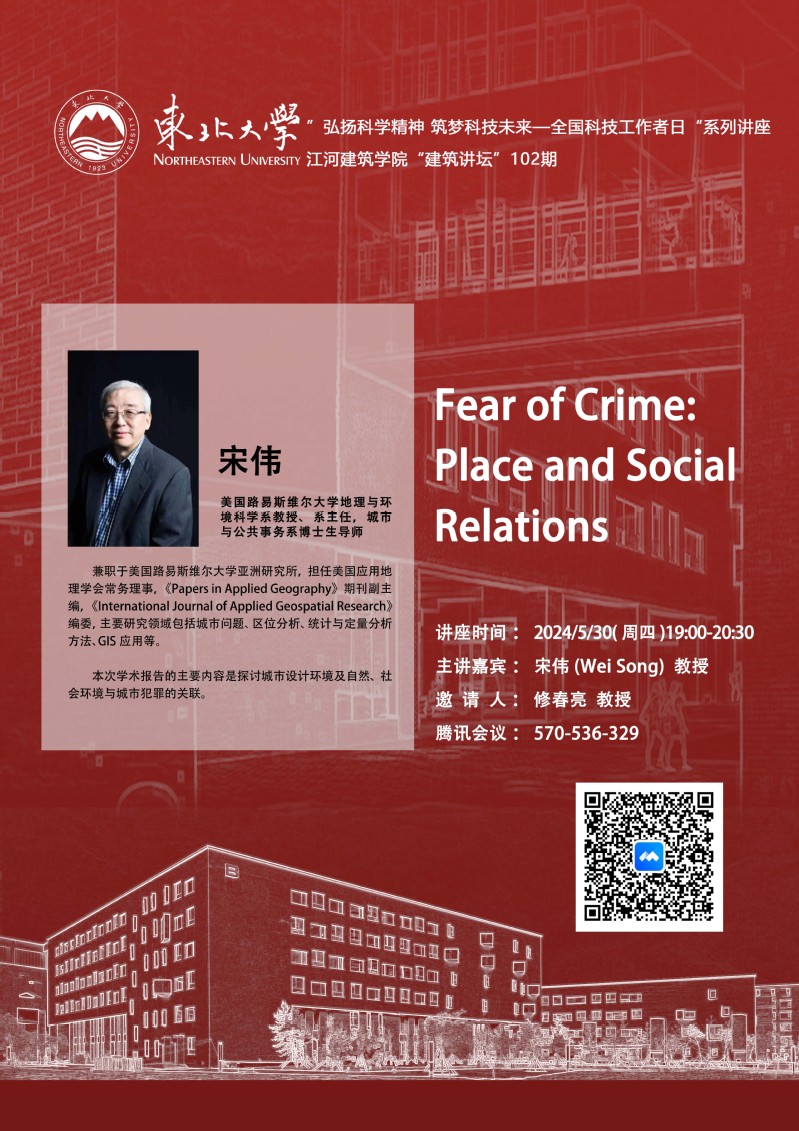 建筑讲坛(102期)预告:Fear of Crime: Place and Social Relations
