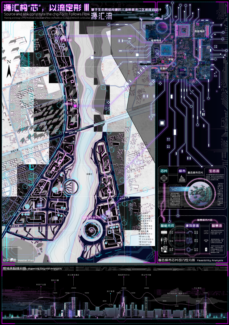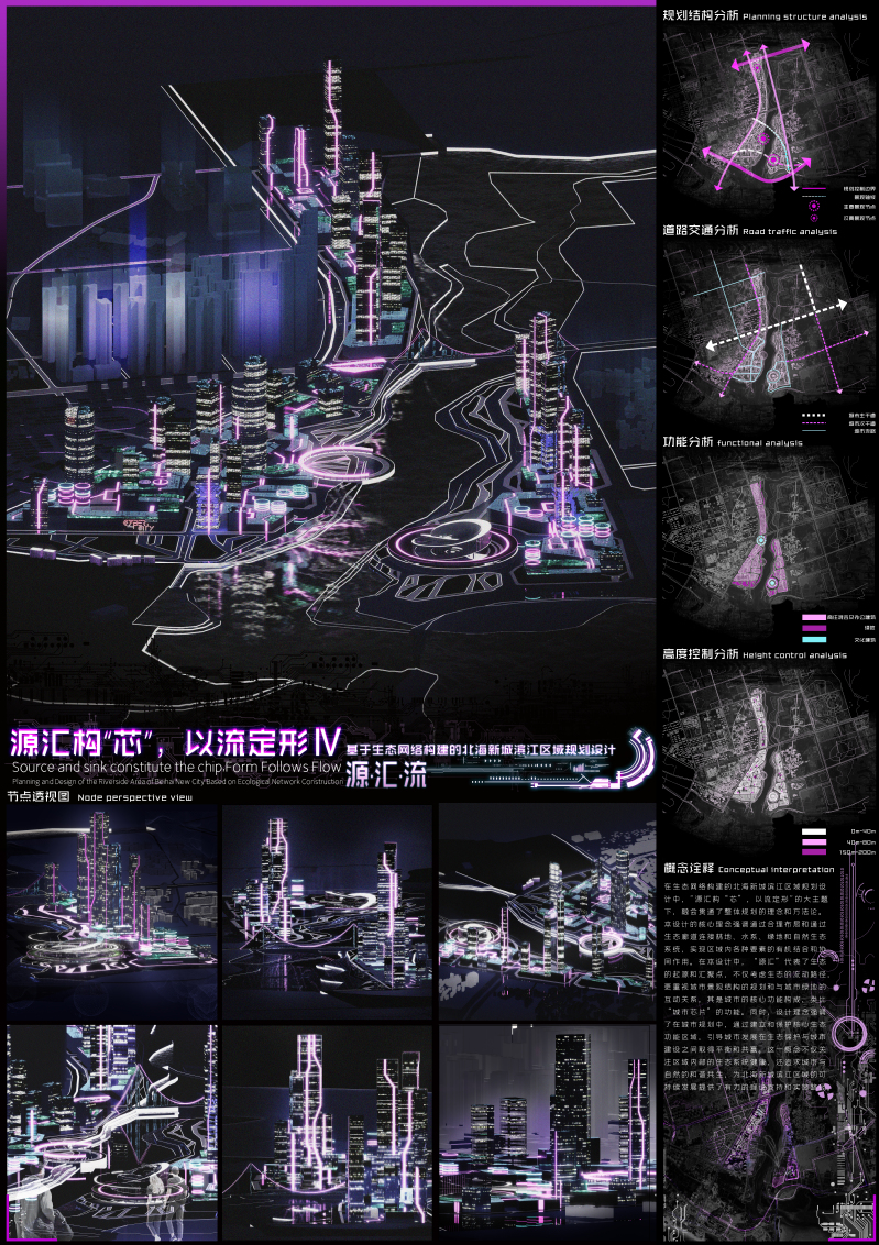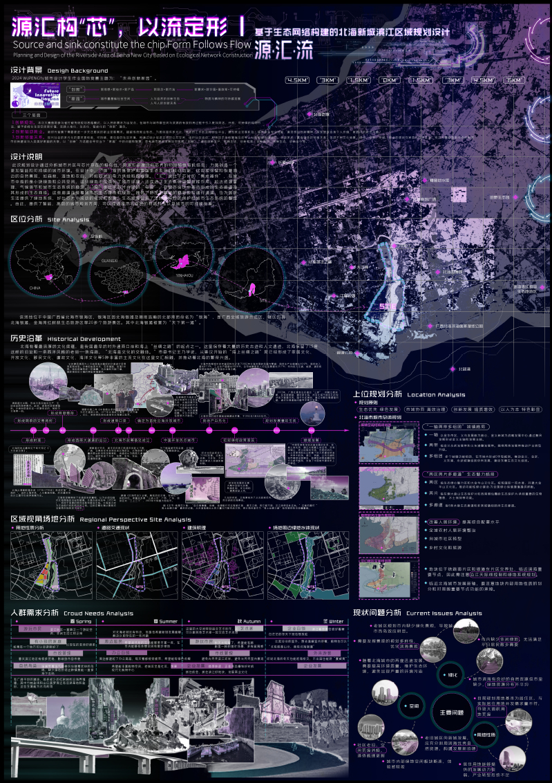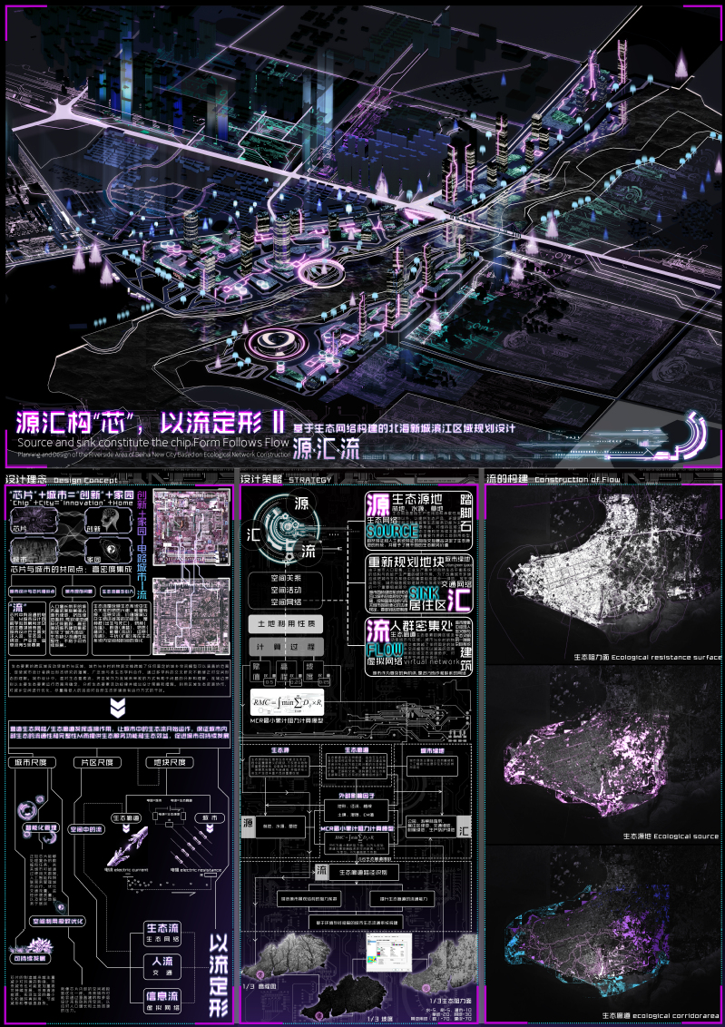 作品名称:源汇构,以流定形--基于生态网络构建的北海新城滨江区域规划设计