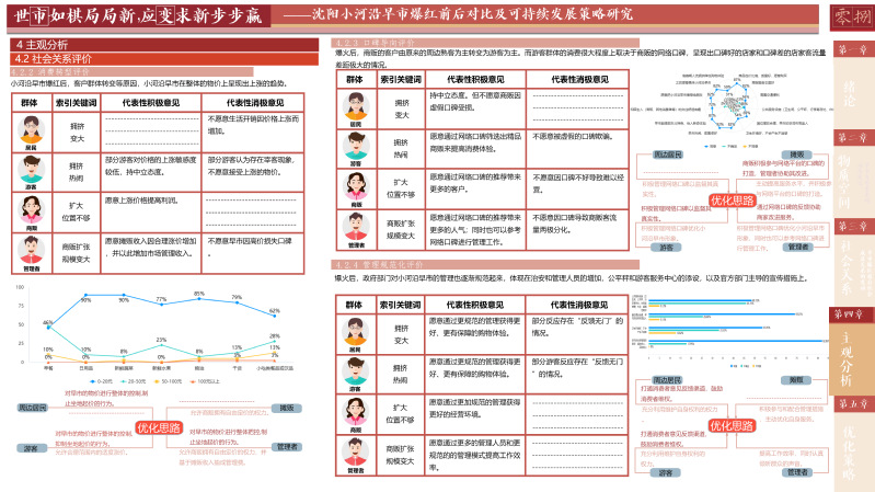 早市作为一种非正式经济,其每日的繁忙交易不仅为当地商贩提供了稳定的收入来源,还补充了地区经济的成分,是区域经济不可或缺的活力源泉。此外,早市不仅是购物的场所,更是东北文化的一张名片。它承载了丰富的民俗风情和历史记忆,吸引着游客和学者前来探寻,为地方文化的传播和传承提供了重要平台。本研究选取“大东北”网络走红下具有地域性和代表性,并且完整地经理了网络爆红全程的沈阳市小河沿早市作为研究对象。通过跨越爆红时间节点的前后两次调研对小河沿早市的爆红过程进行跟踪调研。通过工作日、双休以及节假日的多次问卷、访谈、观察调研,并结合网络爬取的方法,对小河沿早市爆红后总体状况进行调查。聚焦于物质空间、社会关系两方面的现状与旧况对比,并分别以商贩、管理者、周边居民、游客的用户评价其变化进行主观感受分析。最后总结提出小河沿早市爆红后可持续发展的优化策略。
