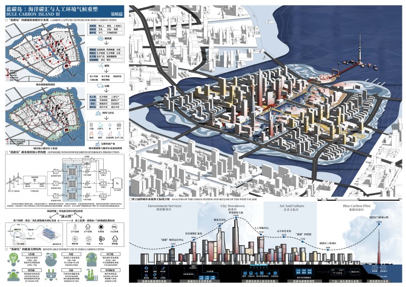 20246月世界气象组织报告中指出,未来全球平均气温将比工业化前高1.5℃,逼近巴黎协定控温目标。极端气候事件的频发,提示我们对控制温室气体排放和增加碳汇已迫在眉睫。为了回应上述问题,我们以北方寒地滨海区域为研究对象,充分发挥海洋蓝色碳汇功能。将城市碳排放进行人工捕集与海洋碳封存。并充分发挥滨海区域的可再生能源,改善城市能源结构。以城市空间为载体,通过城市设计优化,将上述多项系统进行集成,形成寒地气候适宜性城市示范区。