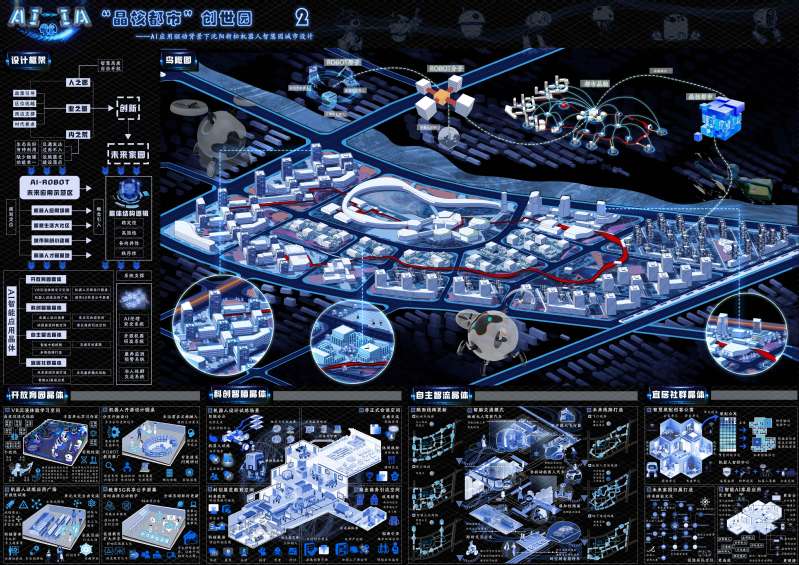 作品名称:AI-IA“晶核都市创世园——AI驱动背景下沈阳新松机器人智慧园城市设计