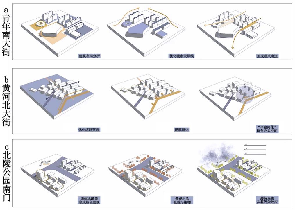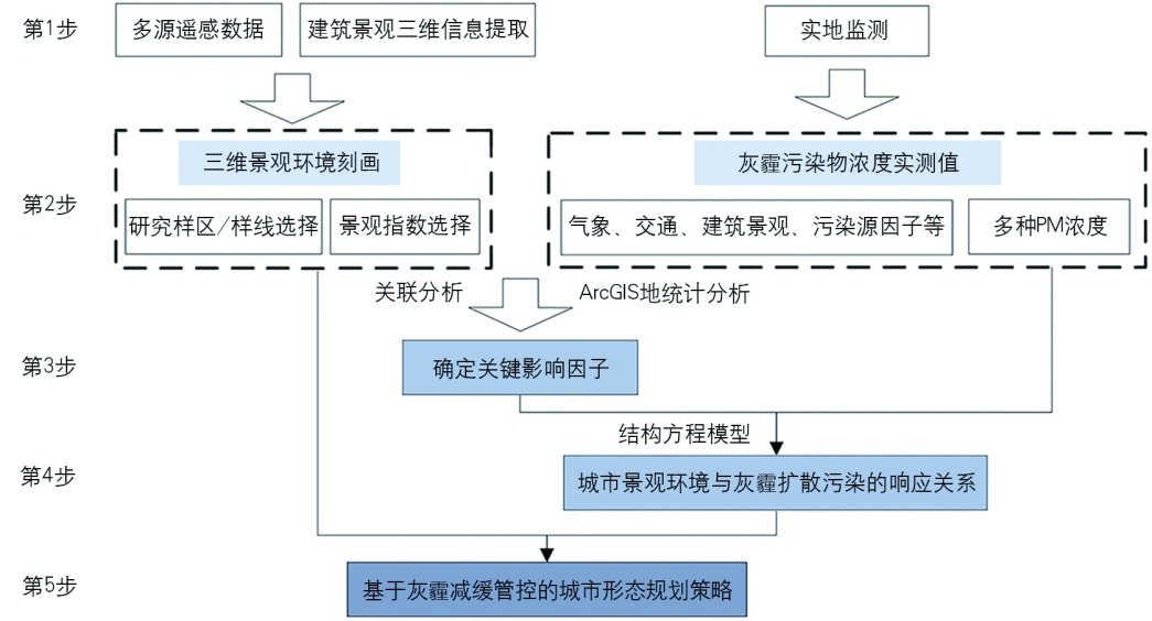 研究聚焦于寒地城市三种颗粒物的空间分布特征,探讨颗粒物分布和扩散的影响机制及规划应对策略。对沈阳四环内典型主干道路颗粒物浓度开展监测,并借助ArcGIS平台以及街景图片测算城市三维景观环境,采用机器学习和结构方程模型分析气象、交通、三维景观和污染源四类要素与颗粒物浓度间的关系。研究结果表明:温度和湿度等气象因子对颗粒物污染的影响最大;绿视率和天空可见度等三维景观因子也是主要影响因素。调控策略包括适当增加街道高宽比,提升界面围合度,天空开阔度以0.5左右为宜,并构建城市通风廊道以减少污染物的聚集和沉积。