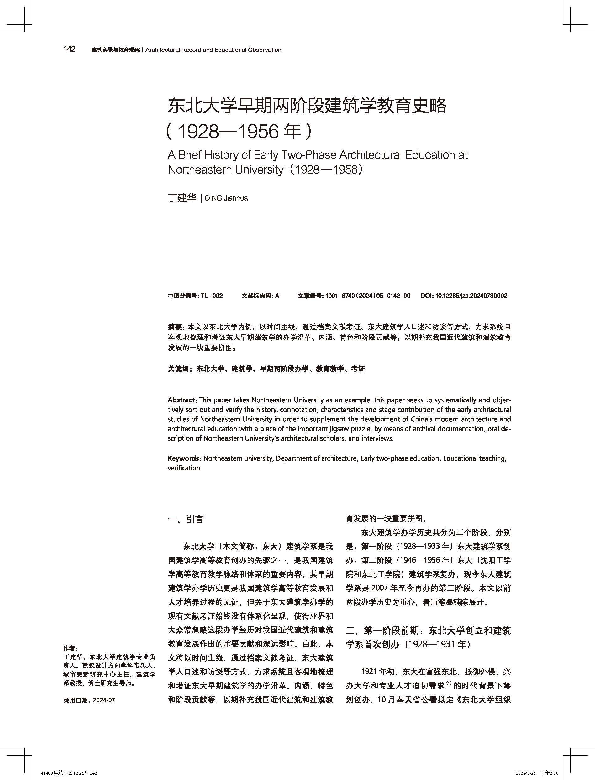 首篇文章针对东北大学建筑学办学的现有文献考证始终没有体系化呈现,建筑学办学对我国近当代建筑和建筑教育发展做出的重要贡献和深远影响描述模糊,建筑主流期刊相关文献研究空白等现状,以及对于东大建筑学办历史,学业界和大众虽已取得共识,但关于这段历史常被业界忽略或一笔带过等问题。文章以时间主线,系统且客观地梳理和考证了东大早期两阶段建筑学的办学沿革、内涵、特色和阶段贡献等内容,补全我国近代建筑和建筑教育发展的这一重要拼图。