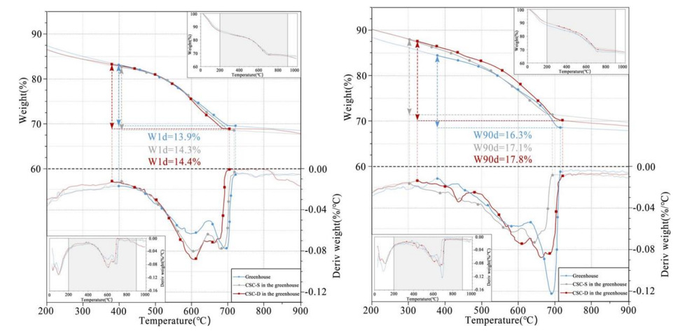 温室环境内1天、90天TGA结果对比分析